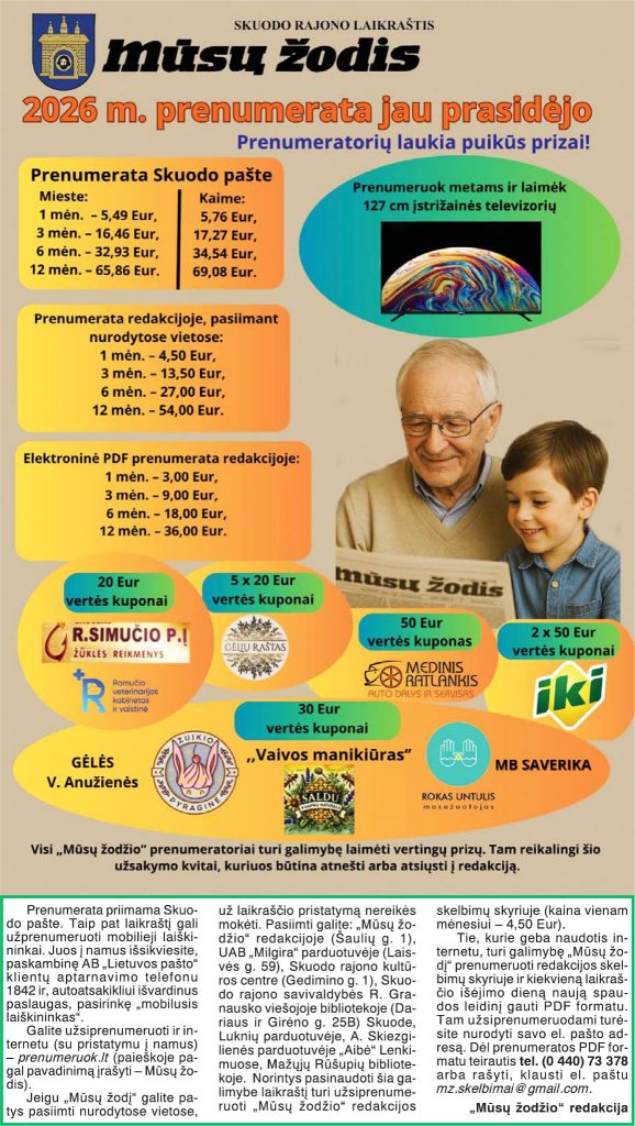 Sužinokite kaip galite užsiprenumeruoti „Mūsų žodį“ 2025-iesiems metams.