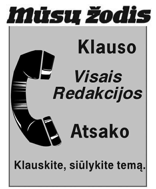 Laikraštyje „Mūsų žodis“ bei priede „Vakarų Lietuva“ galite talpinti reklamą, skelbimus, sveikinimus, užuojautas, padėkas ir kt.