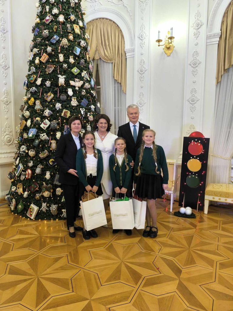 Šiais metais pirmosios ponios inicijuota akcija „Sparnuoti išminties, žinių ir kūrybos metai“ subūrė visų šalies savivaldybių bendruomenes, mokyklas, dienos centrus, socialinių paslaugų įstaigas, Trečiojo amžiaus universitetus ir Prezidento iniciatyvos „Lietuvos galia“ dalyvius. Į Prezidentūrą atkeliavo daugiau kaip 3 500 rankų darbo žaisliukų iš Lietuvos regionų. Šių metų eglė buvo puošiama pelėdomis, apuokais ir knygomis – išminties, žinių ir kūrybos simboliais.