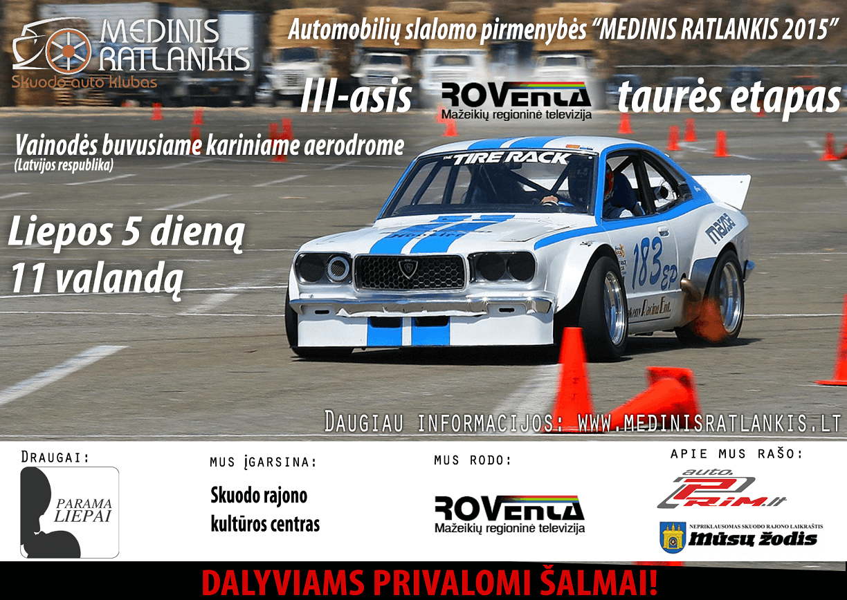 Liepos 5 d. Vainiuodės (Latvija) buvusiame kariniame aerodrome organizuojamas trečias slalomo pirmenybių „Medinis ratlankis 2015“ etapas Roventos TV taurei laimėti. Automobilių sporto mėgėjai kviečiami dalyvauti.