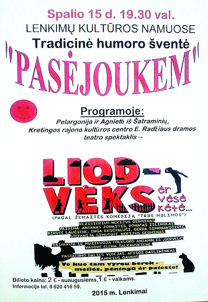 Tradicinė humoro šventė – „Pasėjoukem“ 2015-10-05 | (0) Tradicinė humoro šventė – „Pasėjoukem“ Prenumeruokite „Mūsų žodį“ 2026-iems metams