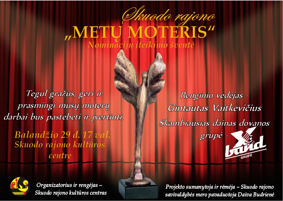 Pirmą kartą Skuodo rajono kultūros centre – nominacijų „METŲ MOTERIS“ įteikimo šventė. Tegul gražūs, geri bei prasmingi mūsų moterų darbai bus pastebėti ir įvertinti.