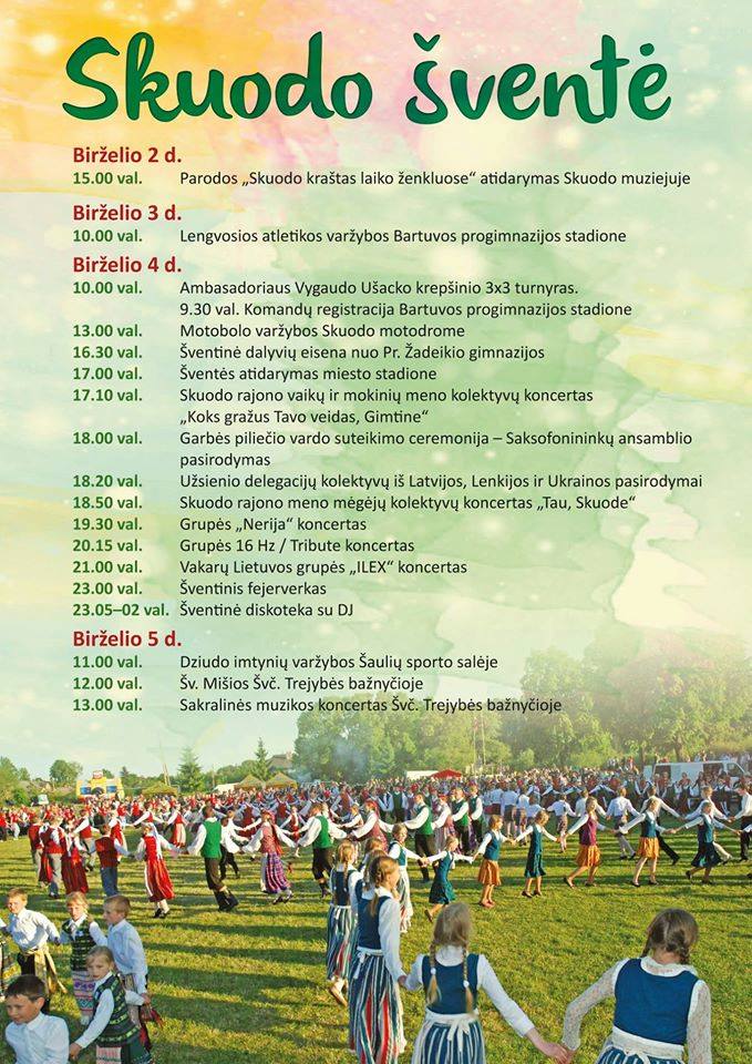 Birželio 4 d. vyks didžiausias metų renginys Skuode, skirtas ne tik miesto, bet ir rajono gyventojams bei svečiams. Vienas pagrindinių šventės akcentų – eitynės, kuriose kviečiami dalyvauti visi mylintys savo kraštą ir norintys prisidėti prie šventinės nuotaikos. Šventinė eisena formuojama 16.00 val. nuo P. Žadeikio gimnazijos.