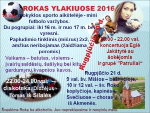 Rugpjūčio 20 d. 10 val. mokyklos sporto aikštelėje – mini futbolo varžybos (du pogrupiai: iki 16 m. ir nuo 17 m. bei vyresni); paplūdimio tinklinis (2×2; mišrus, amžius neribojamas, žaidžiama poromis); 20–22 val. koncertuoja Eglė Jakštytė su šokėjomis ir grupė „Patruliai“. Vaikams – batutas, visiems – įvairių saldėsių, šašlykų bei kitų gardumynų bei kvapnios kavos.