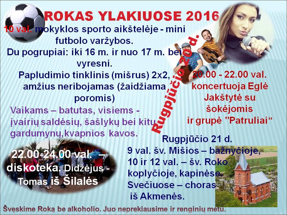 Rugpjūčio 21 d. 9 val. – šv. Mišios bažnyčioje, 10 ir 12 val. – šv. Roko koplyčioje, kapinėse. Svečiuose – choras iš Akmenės.