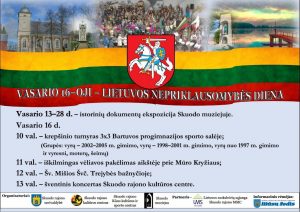 - vasario 13– 28 d. – istorinių dokumentų ekspozicija (Skuodo muziejuje);