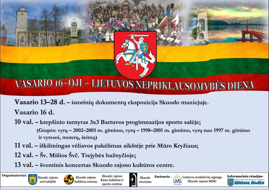 - 13 val. – šventinis koncertas Skuodo rajono kultūros centre.