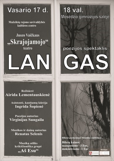 Vasario 17 d. 18 val. Mosėdžio gimnazijos salėje Mažeikių rajono savivaldybės kultūros centro Juozo Vaičkaus „Skrajojamojo“ teatro poezijos spektaklis „Langas“. Muziką atliks krikščioniška grupė „Aš esu“. Bilietai parduodami Mosėdžio seniūnijoje: suaugusiems – 3 Eur, moksleiviams – 1 Eur.