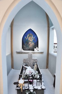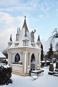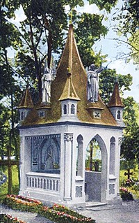 Žemaitijos tikintieji niekada neužmiršo savo pamokslininko, švietėjo, dvasios ir kūno gydytojo, ir šiandien, lankydami jo kapą, meldžiasi ir prašo užtarimo prieš Dievą, o taip pat globos, ginant juos nuo ligų ir kitų gyvenimo negandų. Išreikšdami pagarbą savo tikėjimo broliui, Kretingos pranciškonai 1895 metais ant kapo pastatė akmeninį kryžių su jame iškaltais biografijos taktais. XX a. 4-e dešimtmetyje pradėta rinkti medžiaga jo paskelbimo palaimintuoju bylai, registruojant liudijimus apie stebuklingus pagijimus, pasimeldus prie jo kapo. Tai buvo rašoma į specialią knygą, taip pat publikuojama žurnale „Pranciškonų pasaulis“. Tuometinio Kretingos pranciškonų vienuolyno gvardijono Augustino Dirvelės (1901–1941?) pastangomis 1933 metais ant jo kapo buvo pastatyta neogotikinio stiliaus mūrinė koplytėlė su šv. Pranciškaus ir angelų skulptūromis. Vidinę jos sieną papuošė Marijos su kūdikiu freska, aplink dekoruota augaliniais ornamentais su užrašu „O motina neperstojančios pagalbos“. Taip pagerbtas J. Pabrėžos kapas tapo svarbiausia tikinčiųjų ir piligrimų lankymosi vieta Kretingos kapinėse vieta, kur ne tik per Vėlines, bet ir paprastomis dienomis buvo meldžiamasi ir deginamos žvakės. Koplytėlę stebuklingai aplenkė ir karo negandos, kai šalia esančią Šv. Jurgio koplyčią 1944 metų rudenį apgriovė prie Klaipėdos įsitvirtinusios ir Kretingą apšaudžiusios nacių kariuomenės pabūklo sviediniai. Negandos ją aplenkė ir pokario bei vėlesniais sovietiniais metais. Ji beveik nenukentėjo, išskyrus tai, kad nuo pajūrio žvarbių vėjų, drėgmės ir šalčio poveikio išblukę ornamentai buvo užtinkuoti, palikus tik Švč. Mergelės Marijos su kūdikiu freską, kuri per kelias mėgėjiškas restauracijas, neturint jos prieškarinių nuotraukų, stipriai pasikeitė, tapusi mažai panaši į originalą. Neseniai autoriaus aptiktas 1933–1934 m. atvirukas turėtų padėti atkurti pradinį sieninės tapybos vaizdą. J. Pabrėžos kapas ir koplytėlės freska 1933–1934 m.