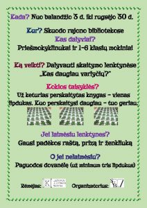 Nuo balandžio 3 d. iki rugsėjo 30 d. vaikai kviečiami dalyvauti knygų skaitymo lenktynėse „Kas daugiau varlyčių?“, skirtose poeto Stasio Jonausko 70-mečiui. Lenktynių taisykles galima sužinoti Skuodo rajono bibliotekose. Daugiausiai knygų perskaičiusių vaikų rudenį lauks prizai. Skaitymo lenktynes organizuoja Skuodo rajono savivaldybės R. Granausko viešosios bibliotekos Vaikų literatūros skyrius. Tai viena iš veiklų pagal projektą, kurį finansuoja Lietuvos kultūros taryba. Pasiteirauti galima tel. 8 698 27 012 arba el. paštu .