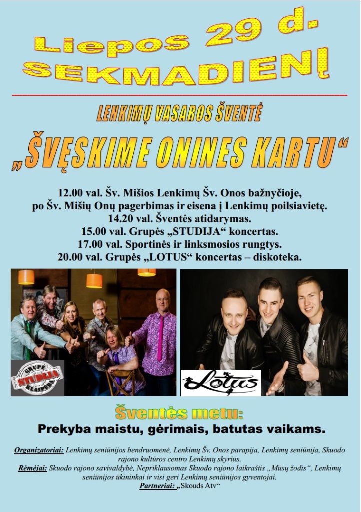 Lenkimų vasaros šventė „Švęskime Onines kartu“ 2018-07-12 | (0) Lenkimų vasaros šventė „Švęskime Onines kartu“ Prenumeruokite „Mūsų žodį“ 2026-iems metams