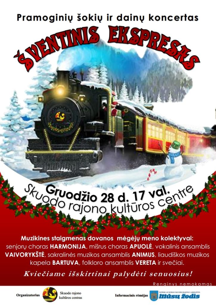 Pramoginių šokių ir dainų koncertas – „Šventinis ekspresas“ 2018-12-17 | (0) Pramoginių šokių ir dainų koncertas – „Šventinis ekspresas“ Prenumeruokite „Mūsų žodį“ 2026-iems metams