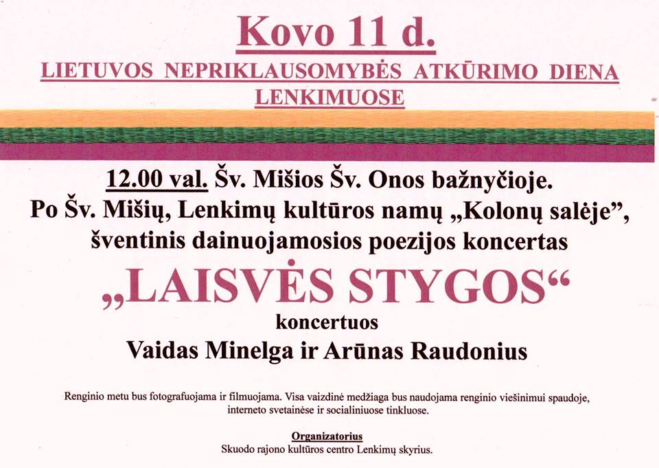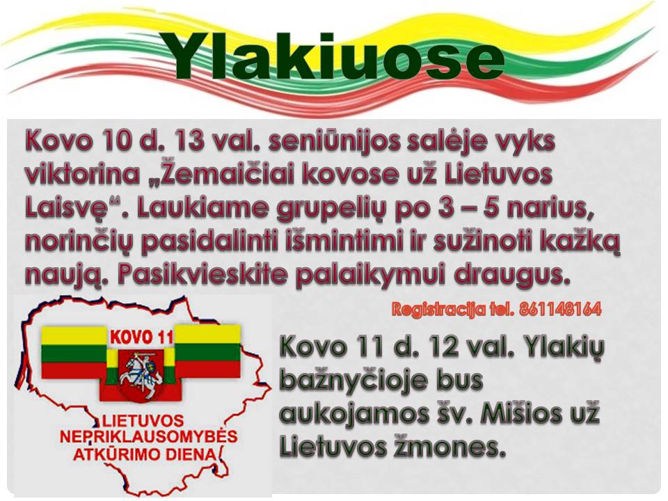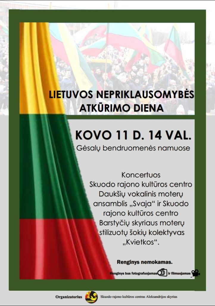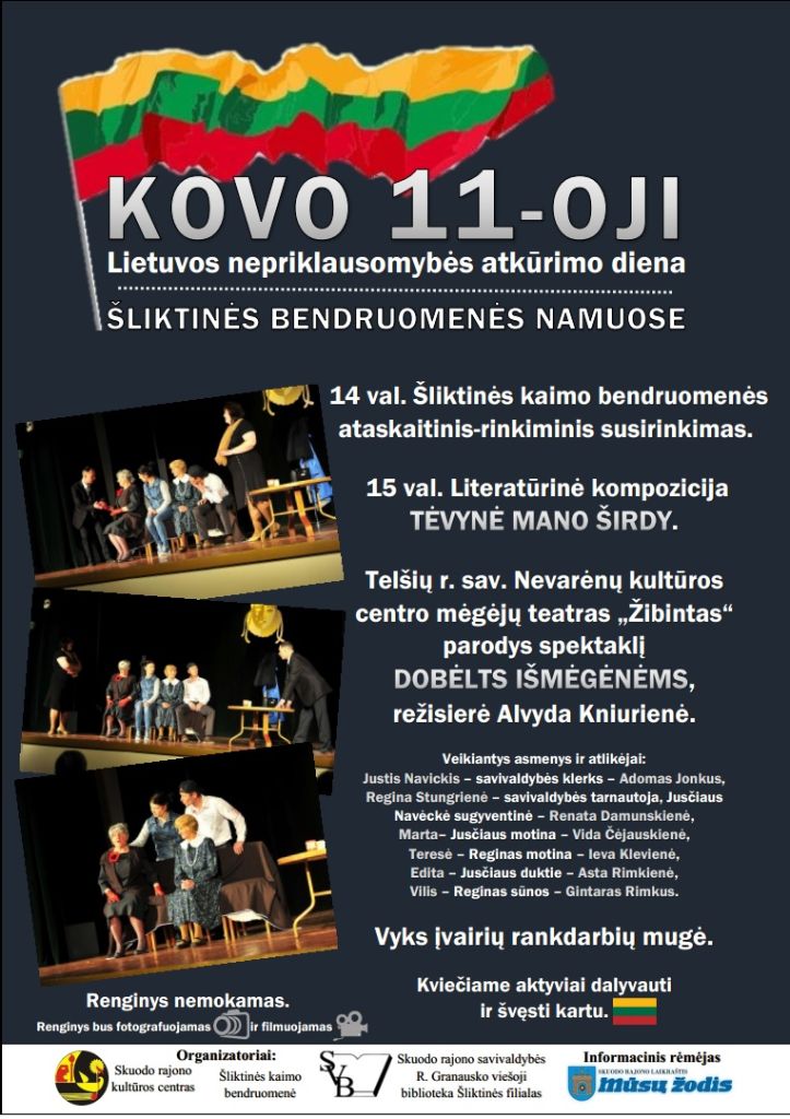 Kovo 9 d. 14 val. Kaukolikų bendruomenės namuose – koncertas, skirtas moterų ir Lietuvos nepriklausomybės dienoms paminėti, „Ji lyg moteris, mama, valstybė“. Dalyvaus Kretingos rajono kultūros centro Kartenos filialo postfolkloro grupė „Vo tēp“.