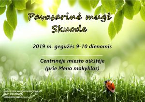 Pavasarinė mugė Skuode 2019-05-02 | (0) Gegužės 9–10 dienomis centrinėje miesto aikštėje (prie Skuodo meno mokyklos) vyks Pavasarinė mugė. Visi maži ir dideli miestelėnai bei jų svečiai maloniai kviečiami apsilankyti. Prenumeruokite „Mūsų žodį“ 2026-iems metams