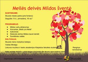 „Būtent šią dieną „Meilės deivės Mildos“ šventę švęsime kitaip – neaukosime, nerinksime žolelių, neužkalbinėsime kitų meilės kerais, kaip tai darydavo mūsų protėviai. Renginyje prisiminsime deivę Mildą, atidarysime simbolinius Meilės vartus, linksmai šoksime liaudies šokius, klausysimės dovanojamo koncerto, vyks aukcionas, linksmos komandinės žaidynės, skirtos Mildos taurei laimėti. Taip pat siųsime dievybei, šios šventės globėjai, savo meiles svajones“, – pasakoja renginio sumanytoja ir režisierė Laura Žičkutė, Lietuvos muzikos ir teatro akademijos Klaipėdos fakultetų studentė, būsimoji profesionali renginių režisierė.