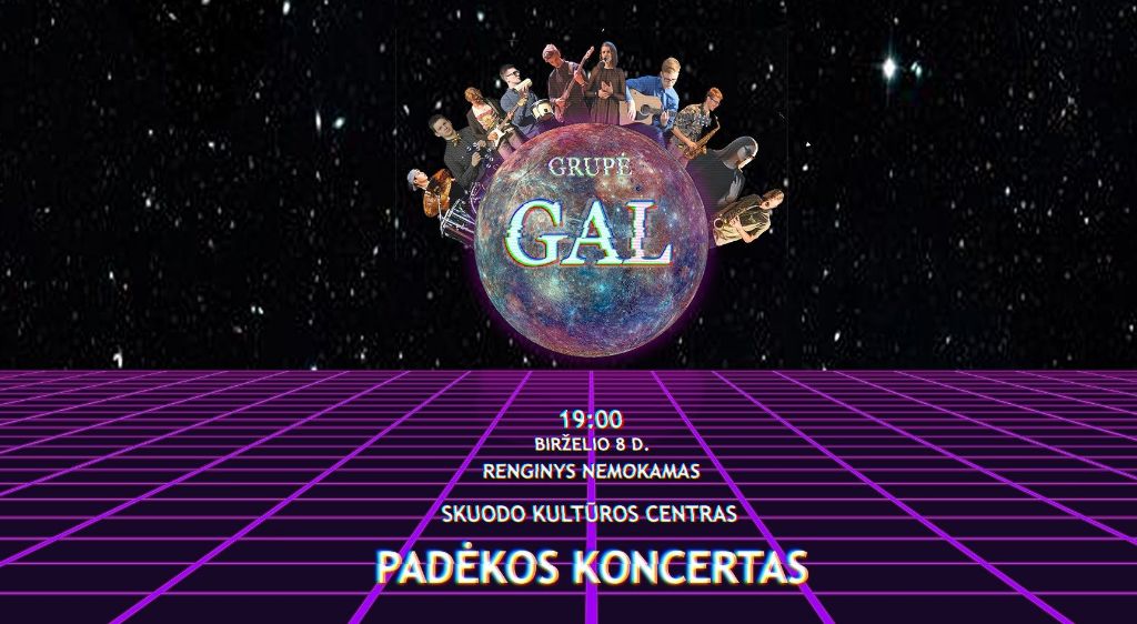 Birželio 8 d. 19 val. Skuodo rajono kultūros centro salėje – nemokamas Skuodo meno mokyklos grupės GAL padėkos koncertas. Kviečiami visi šios grupės palaikytojai, gerbėjai, bendraminčiai.