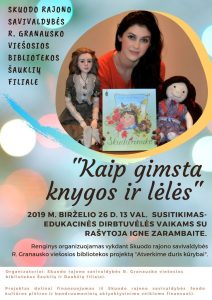 Birželio 26 d. 13 val. Skuodo rajono savivaldybės R. Granausko viešosios bibliotekos Šauklių filiale vyks susitikimas-edukacinės dirbtuvėlės vaikams su rašytoja Igne Zarambaite „Kaip gimsta knygos ir lėlės“. Organizatoriai – Skuodo rajono savivaldybės R. Granausko viešosios bibliotekos Šauklių ir Daukšių filialai. Šis renginys – pagal minėtos bibliotekos projektą „Atverkime duris kūrybai“, dalinai finansuojamą iš Skuodo rajono savivaldybės fondo kultūros plėtros ir bendruomenių aktyvinimo veikloms finansuoti.