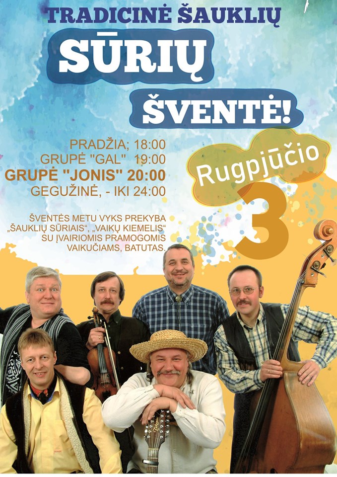 Rugpjūčio 3 d. Šaukliuose, poilsiavietėje prie Lelijų tvenkinio, – tradicinė Sūrių šventė. Jos pradžia – 18 val. Bus prekiaujama gardžiais šaukliškių sūriais, veiks vaikų kiemelis su batutu ir kitomis pramogomis mažiesiems. Laimę bus galima išbandyti loterijoje. 19 val. – grupės „Gal“ koncertas“, 20 val. koncertuos „Jonis“. Visų labai laukiama atvykstant.