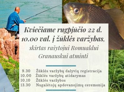 Skuodo rajono savivaldybės R. Granausko viešoji biblioteka su Skuodo rajono savivaldybės Kūno kultūros ir sporto centru rugpjūčio 22 d. organizuoja žūklės varžybas. Jų pradžia – 10 val., trukmė – 3 val. Bus žvejojama prie Respublikinio V. Into akmenų muziejaus esančiame tvenkinyje. Norintys dalyvauti šiose nemokamose varžybose iki rugpjūčio 19 d. privalo užsiregistruoti bibliotekoje el. paštu "> arba telefonu (8 440) 73 299. Žūklės varžybų tikslas – paminėti šviesaus atminimo rašytojo, eseisto, prozininko R. Granausko, kuris buvo puikus žvejys mėgėjas, 80-ąsias gimimo metines. Žūklės varžybų nuostatai.