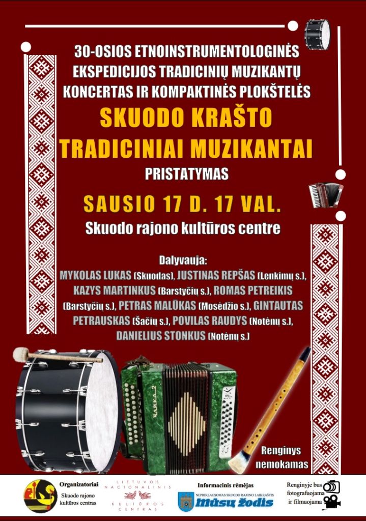 Etnoinstrumentologinės ekspedicijos tradicinių muzikantų koncertas ir kompaktinės plokštelės pristatymas 2020-01-06 | (0) Etnoinstrumentologinės ekspedicijos tradicinių muzikantų koncertas ir kompaktinės plokštelės pristatymas Prenumeruokite „Mūsų žodį“ 2026-iems metams