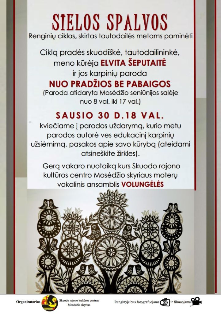 Parodos renginių ciklas „Sielos spalvos“ 2020-01-27 | (0) Parodos renginių ciklas „Sielos spalvos“ Prenumeruokite „Mūsų žodį“ 2026-iems metams