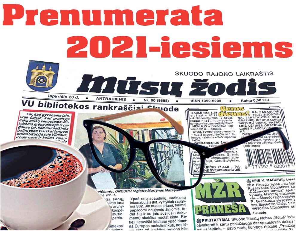 Tie rajono laikraščio skaitytojai, kurių gyvenamojoje vietovėje yra pašto skyrius, pasinaudoti mobiliojo laiškininko paslauga, t. y. išsikviesti į namus, negali. Jie „Mūsų žodį“ 2021-iesiems turi užsisakyti pašte. Jeigu pastarojo nebėra, mobilųjį laiškininką galima išsikviesti, paskambinus AB „Lietuvos paštas“ klientų aptarnavimo telefonu 8 700 55 400 ir pasirinkus paslaugą „mobilusis laiškininkas“. O jei patiems tai padaryti per sunku, galima paskambinti „Mūsų žodžio“ redaktorei tel. 8 699 21 525, kad padėtų – patarpininkautų. Nors spaudą galima užsiprenumeruoti ir internetu www.prenumeruok.lt.