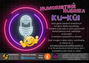 Kviečia dalyvauti humoristinėje rubrikoje „Ku-kū!“ 2021-04-09 | (0) Skuodo rajono kultūros centras skelbia humoristinę rubriką KU-KŪ! Turintys smagių vaizdo įrašų, nuotraukų ar tekstų, iš kurių būtų galima pasijuokti ar bent nusišypsoti, kviečiami juos siųsti el. paštu *protected email* ir juoko doze pasidalinti su visais Prenumeruokite „Mūsų žodį“ 2026-iems metams
