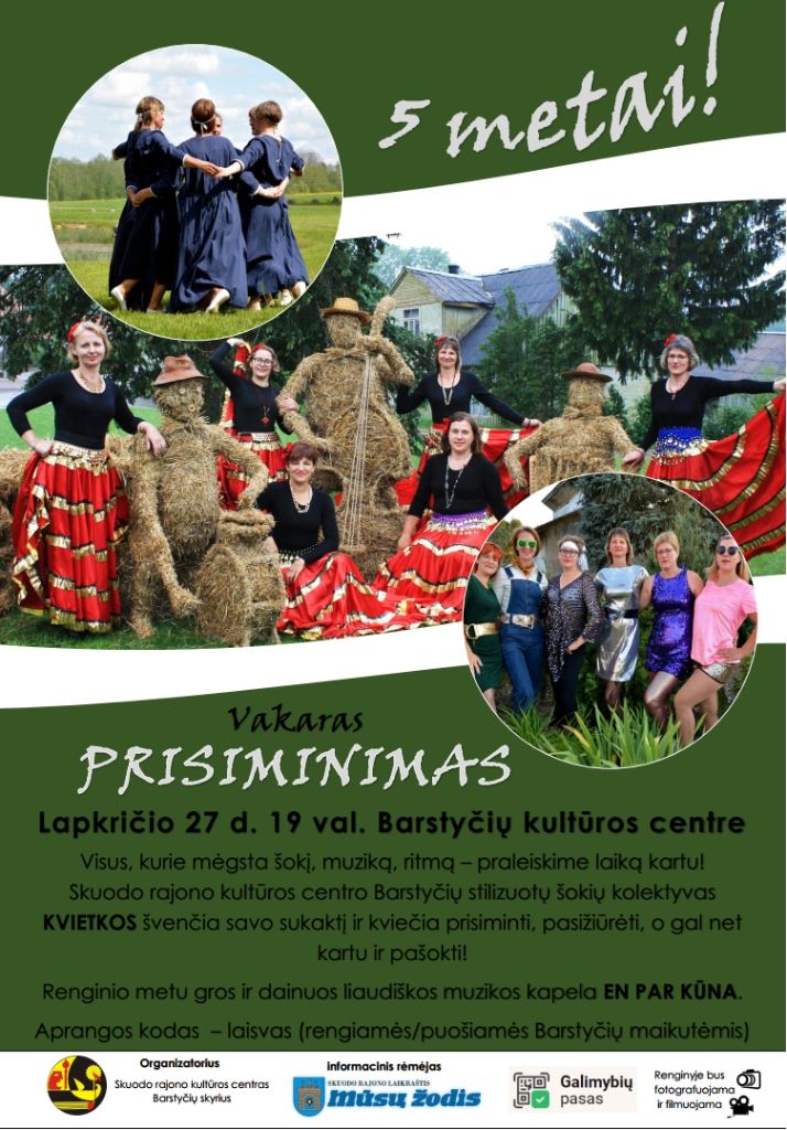 Šokių kolektyvo „Kvietkos“ 5 metų veiklos minėjimas Barstyčiuose 2021-11-23 | (0) Šokių kolektyvo „Kvietkos“ 5 metų veiklos minėjimas Barstyčiuose Prenumeruokite „Mūsų žodį“ 2026-iems metams