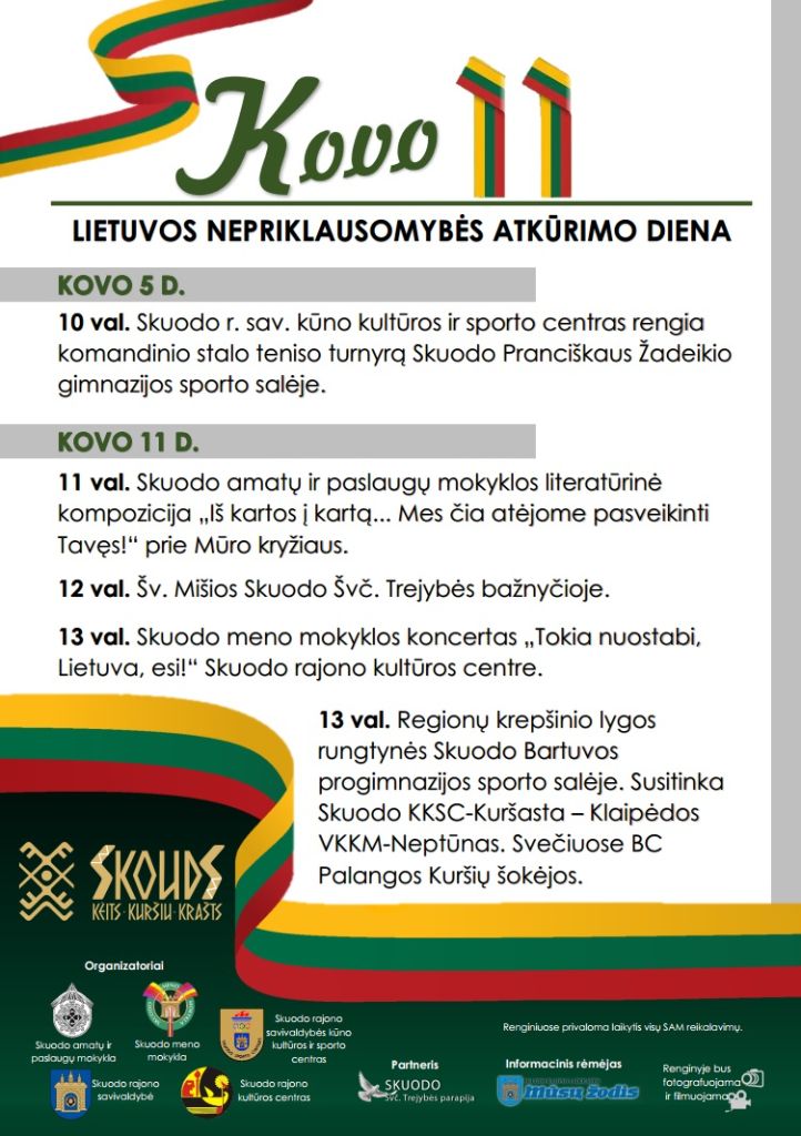 Kovo 11-osios renginiai Skuode 2022-03-08 | (0) Kovo 11-osios renginiai Skuode Prenumeruokite „Mūsų žodį“ 2026-iems metams