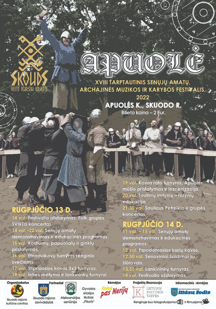 Tarptautinis senųjų amatų, archajinės muzikos ir karybos festivalis „Apuolė“ 2022-08-01 | (0) Tarptautinis senųjų amatų, archajinės muzikos ir karybos festivalis „Apuolė“ Prenumeruokite „Mūsų žodį“ 2026-iems metams