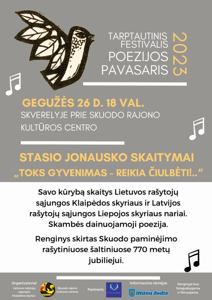 Festivalis „Poezijos pavasaris“ Skuode 2023-05-15 | (0) Festivalis „Poezijos pavasaris“ Skuode Prenumeruokite „Mūsų žodį“ 2026-iems metams