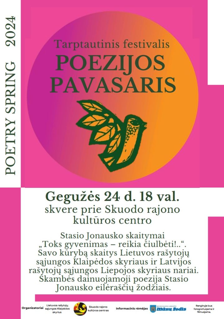 Tarptautinis festivalis „Poezijos pavasaris“ Skuode 2024-05-16 | (0) Tarptautinis festivalis „Poezijos pavasaris“ Skuode Prenumeruokite „Mūsų žodį“ 2026-iems metams
