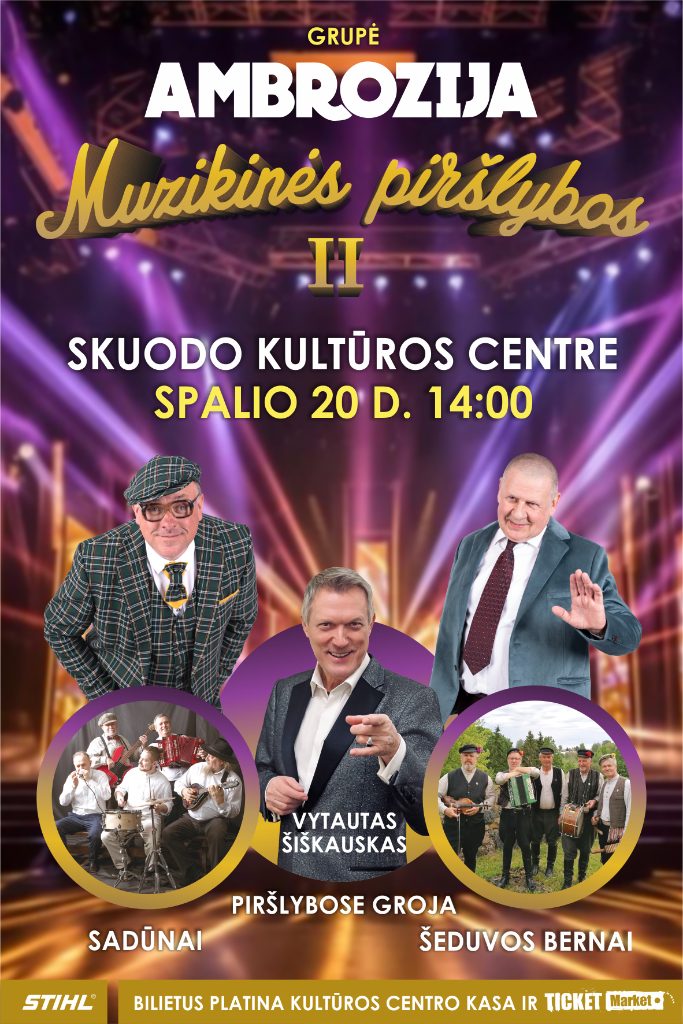 MUZIKINĖS PIRŠLYBOS 2 vyks Skuodo kultūros cente spalio 20 d. 14val.. Bilietus platina kultūros centro kasa ir ticketmarket.lt.