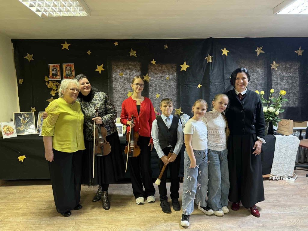 Vakaronėje prisiminėme dvi itin ryškias asmenybes – Mikalojų Konstantiną Čiurlionį ir Vaclovą Intą. Šiemet švenčiame jų jubiliejinius metus: Čiurlionio – 150, mūsų daktaro – 100, nes dideli žmonės nemiršta – jie gyvena atminty. Apie daktaro gyvenimą savo menine kompozicija ,,Laiškai akmenų karaliui“ papasakojo Skuodo neįgaliųjų draugijos meno studija „Obelėlė“ (vadovė Nijolė  Jasienė). Ačiū kolektyvo nariams ne tik už programą, bet ir mums tekusią garbę tapti gerumo akto liudininkais. Rita Masiulienė Skuodo meno mokyklai padovanojo du smuikus. Tuo nuoširdžiausiai pasidžiaugė mokytoja Lina Gūžienė ir mokyklos direktoriaus pavaduotoja ugdymui Daiva Andriekuvienė.
